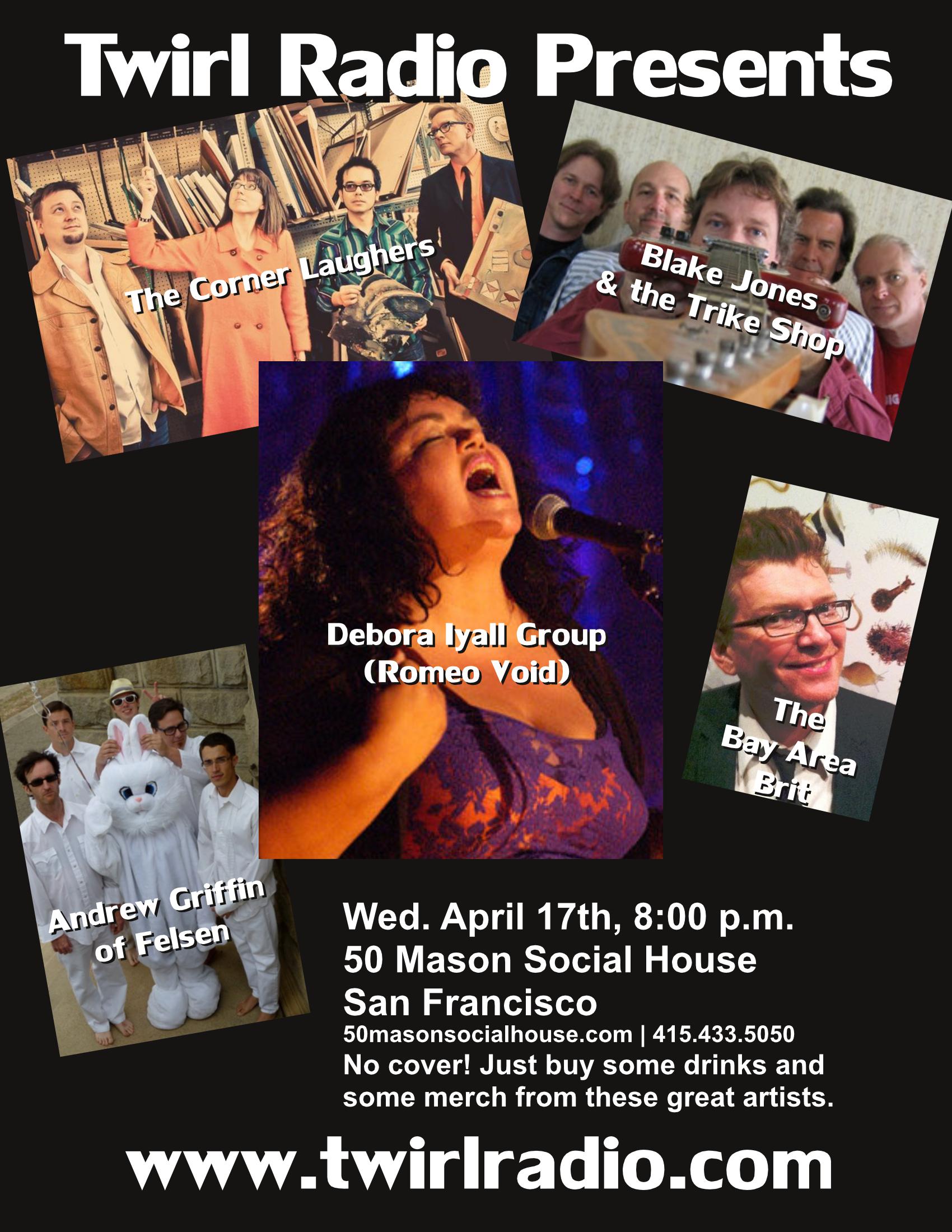 The podcast from the first-ever live Twirl Radio Presents show is now available! This epic show happened on April 17, 2013, at 50 Mason Social House in San Francisco, and the legendary Debora Iyall, of Romeo Void fame, headlined as part of Debora Iyall Group (DIG). They absolutely killed it, with their guitar/ sax/ keyboard attack, and Debora’s vocals in perhaps the best form of her career.